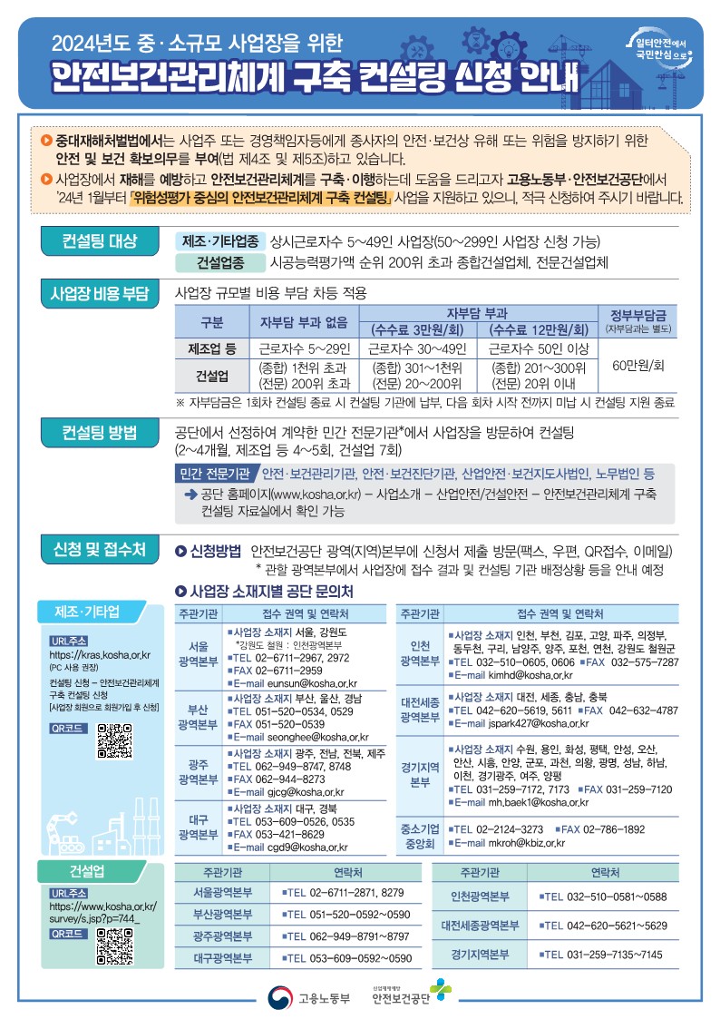 지금, 산업안전보건공단에서 '안전보건관리체계 구축 컨설팅' 지원사업을 하고 있습니다.