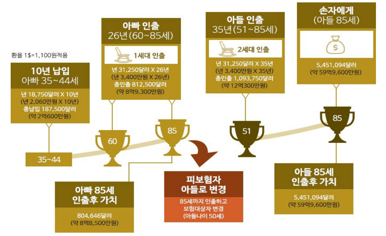 또 하나의 파워 솔루션이다. 보험 하나를 여러개로 분리하여 여러 명에게 자산을 이전할 수 있다.
