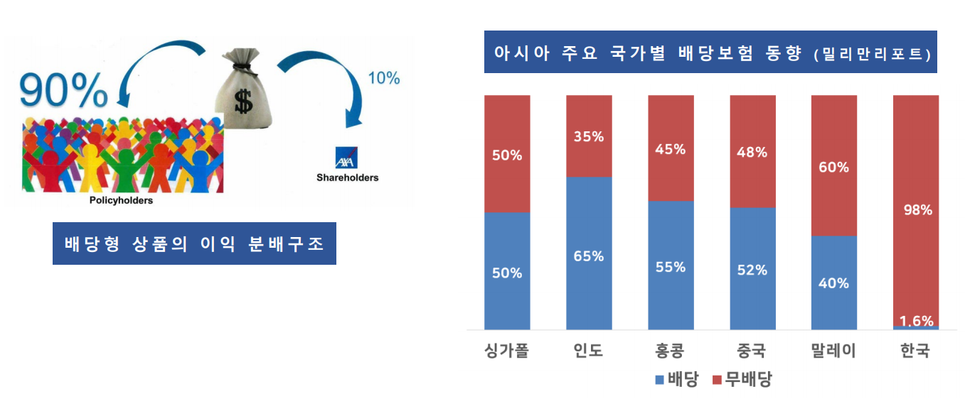 하지만 국내 보험사는 배당상품을 모두 없앴고 현재 무배당 상품만 판매하고 있다.